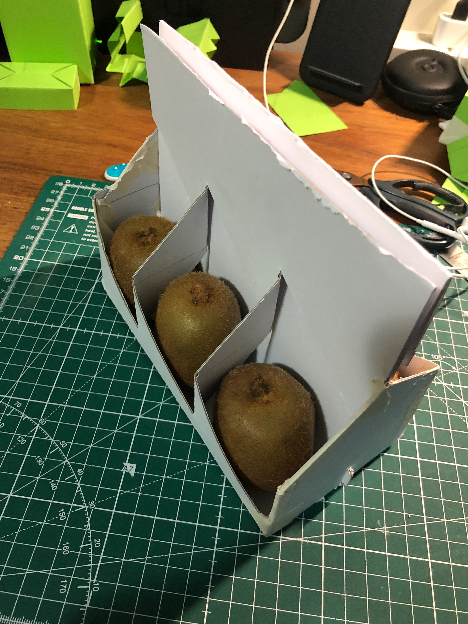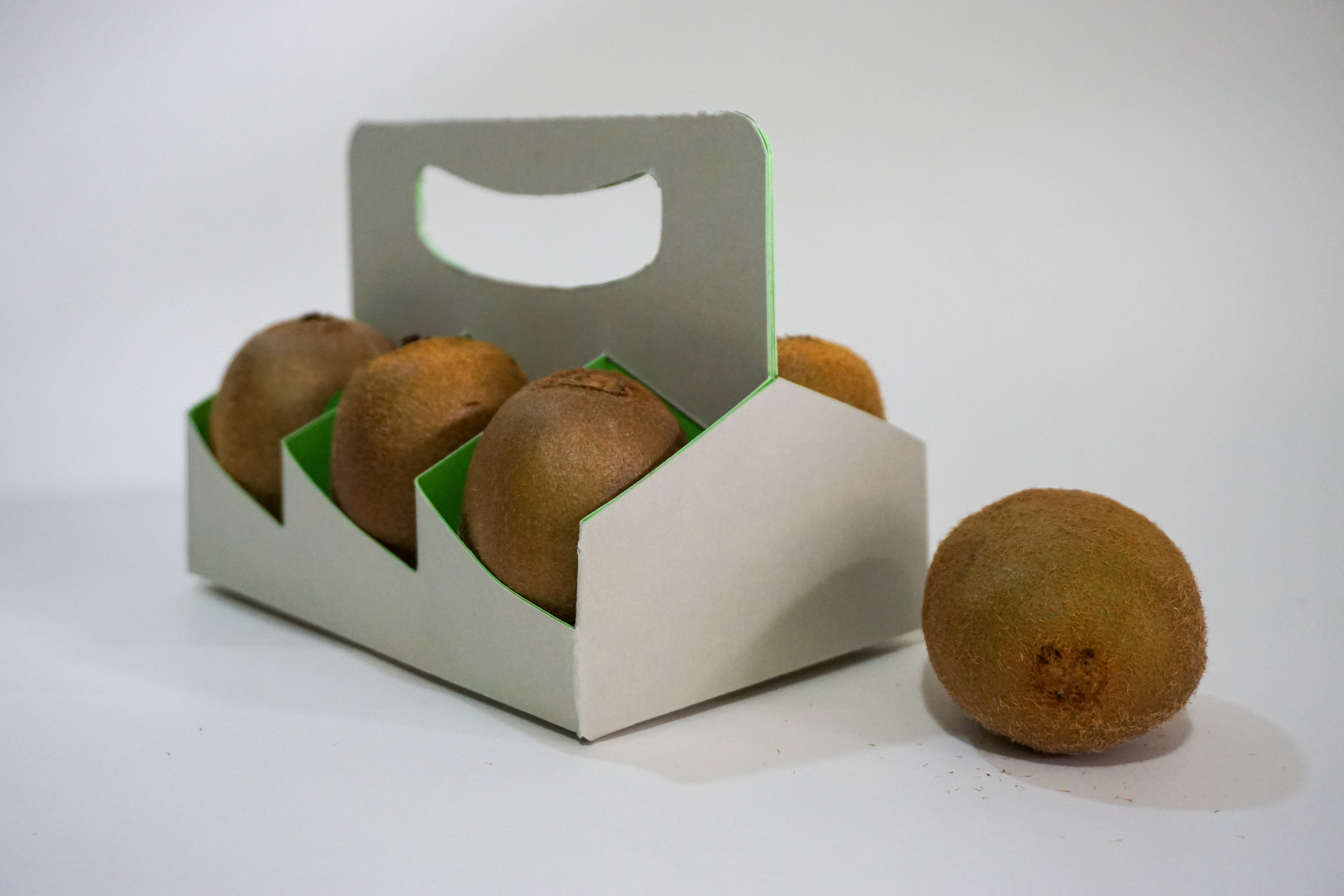 I chose to curate a foldable fruit packaging system designed to carry half a dozen Kiwi fruits
